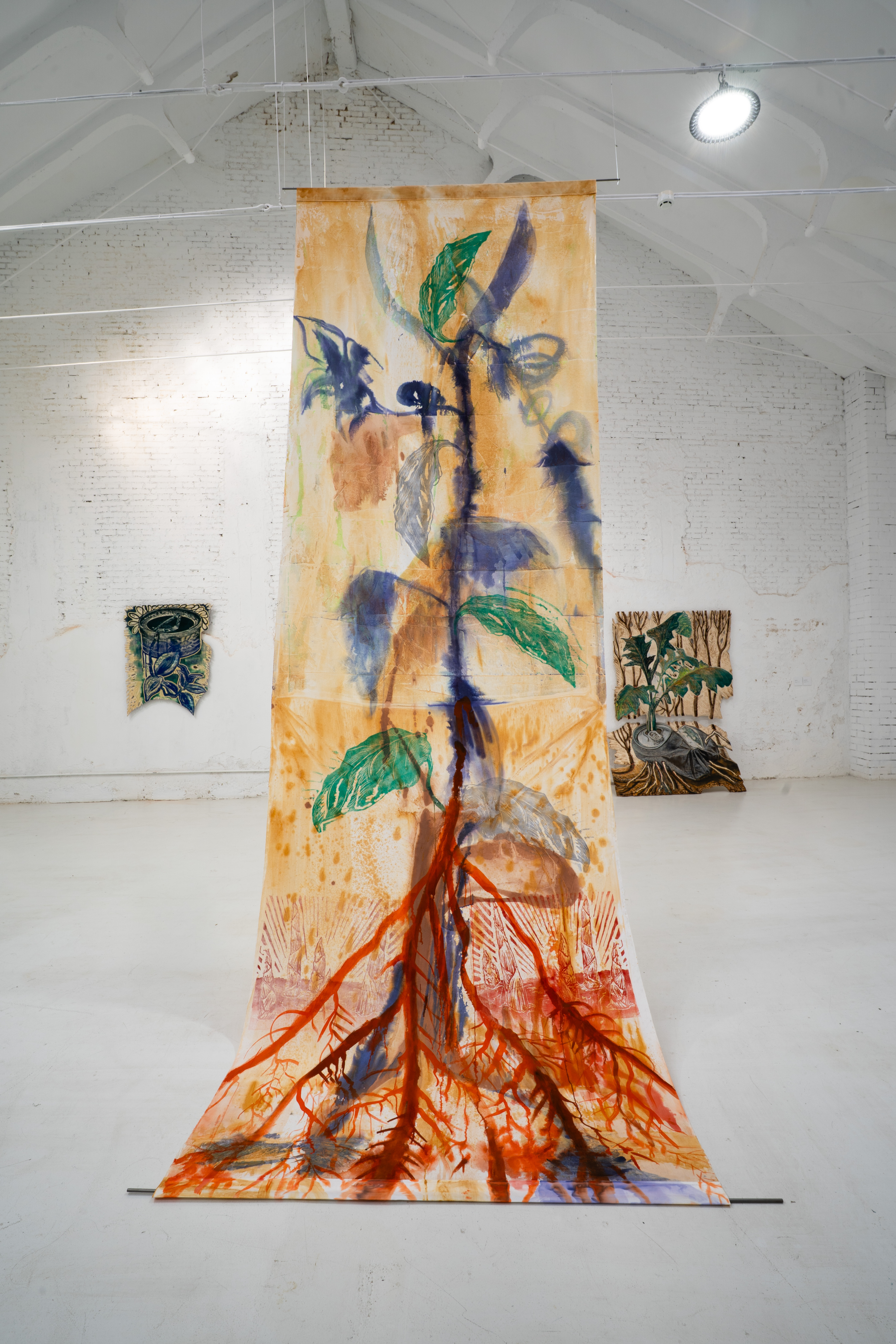 La série Croisements révèle toute la densité de son processus créatif, en mêlant motifs, techniques et palettes chromatiques. Ses pièces se développent sur plusieurs plans, points de vue et états, suggérant une perception organique et changeante. Tereza Lochmann trace un parcours à travers ces formes distordues, invitant le public à déambuler et à laisser les plantes pousser autour de lui et le traverser. »