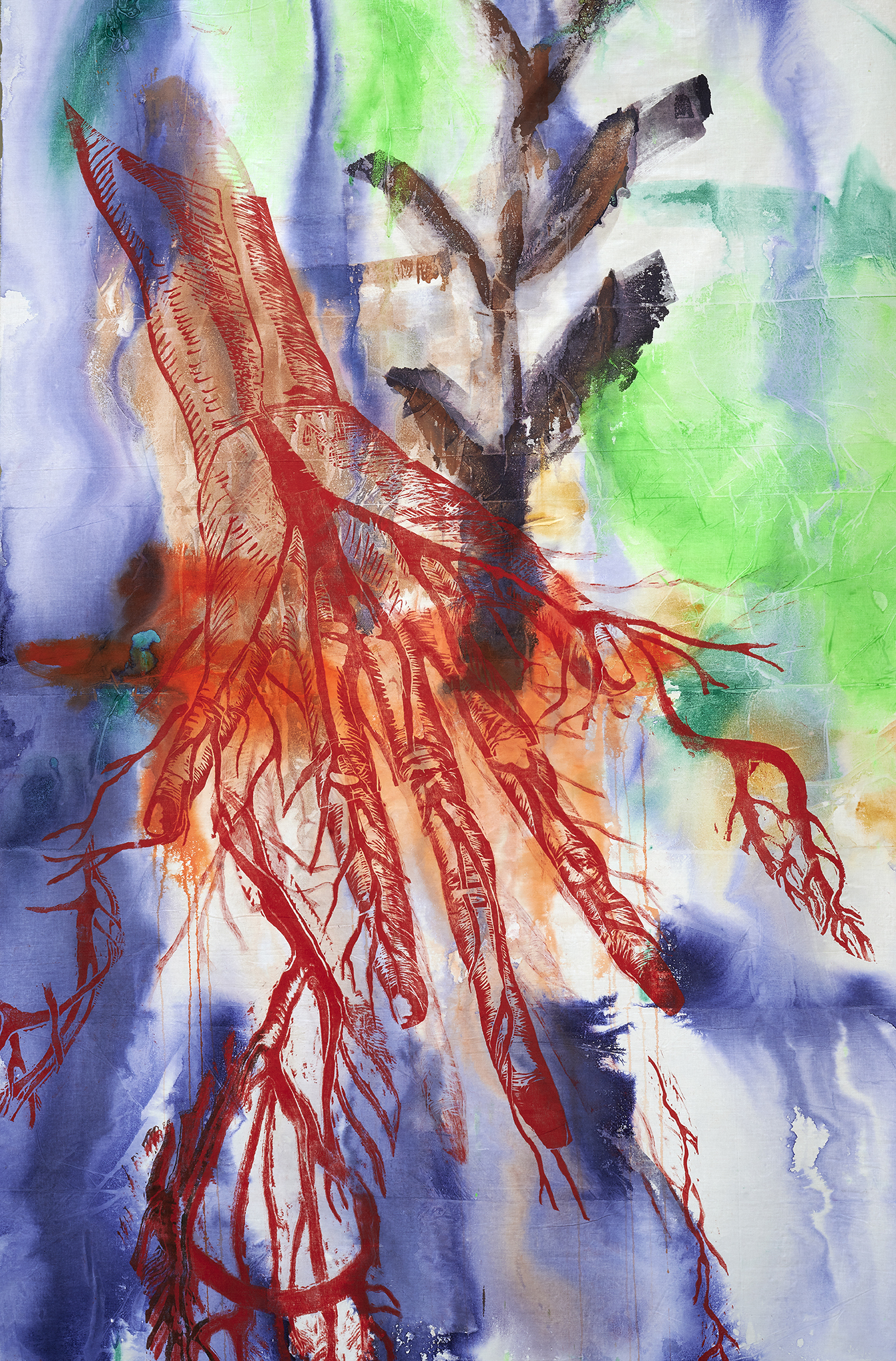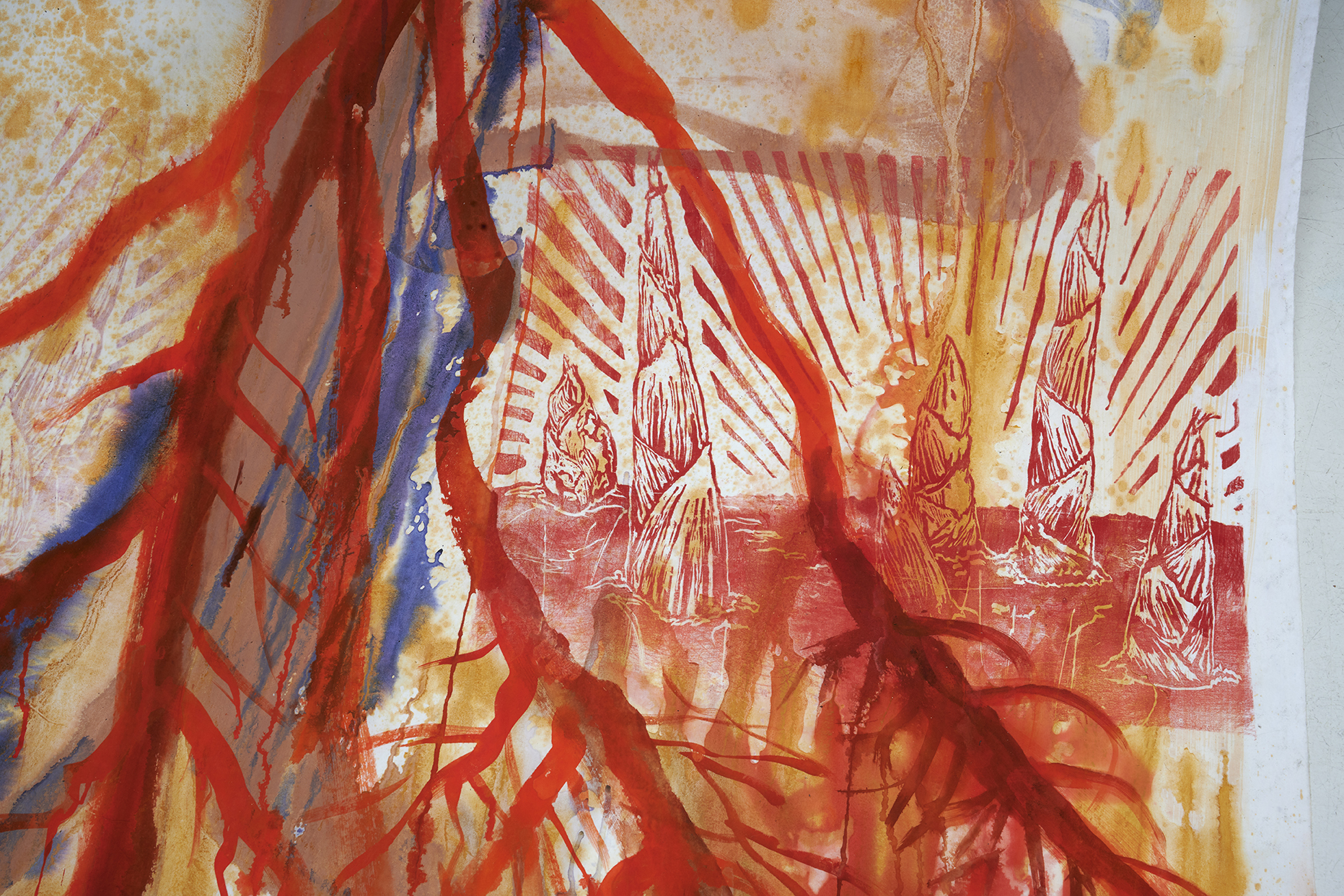 bois gravé et encres lithographiques ‧ 213 x 140 cm